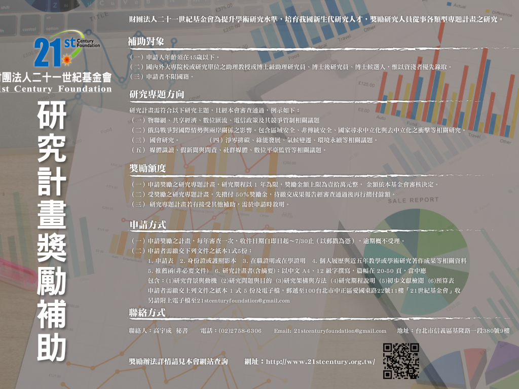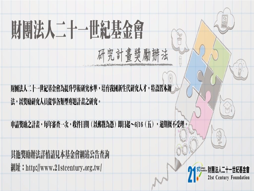 本會2021年學術研究獎勵辦法,歡迎各界踴躍申請...