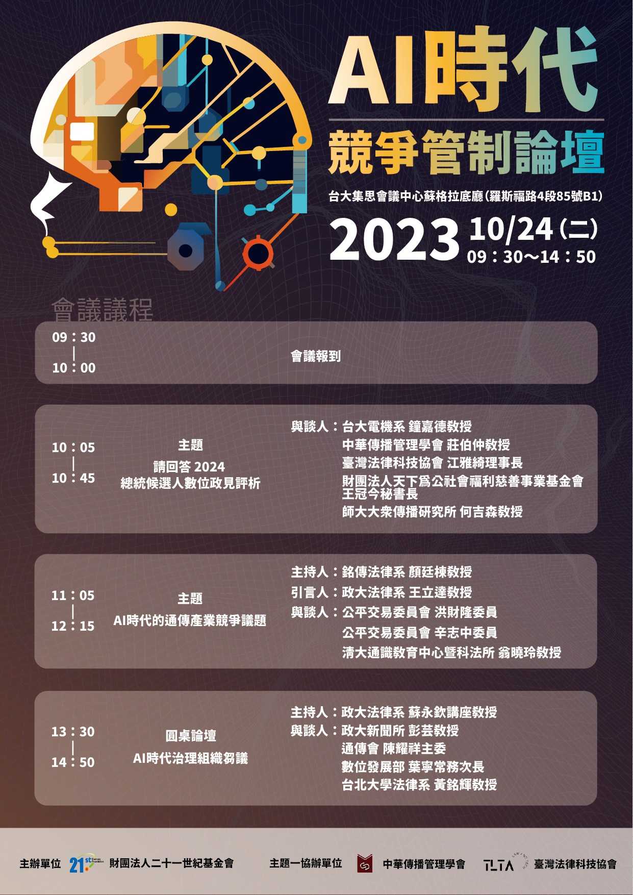 AI技術的導入,將對產業競爭造成影響,主管機關可採取何種監管措施,在治理組織上是否需要有所調整,以在「市場機制」與「產業創新」之間取得平衡,這將是這幾年亟需面對的重要課題,也是產業界與主管機關所關心的議題。本活動邀請到各相關主管機關重要人物,提出各自對於未來產業發展的看法與建言!