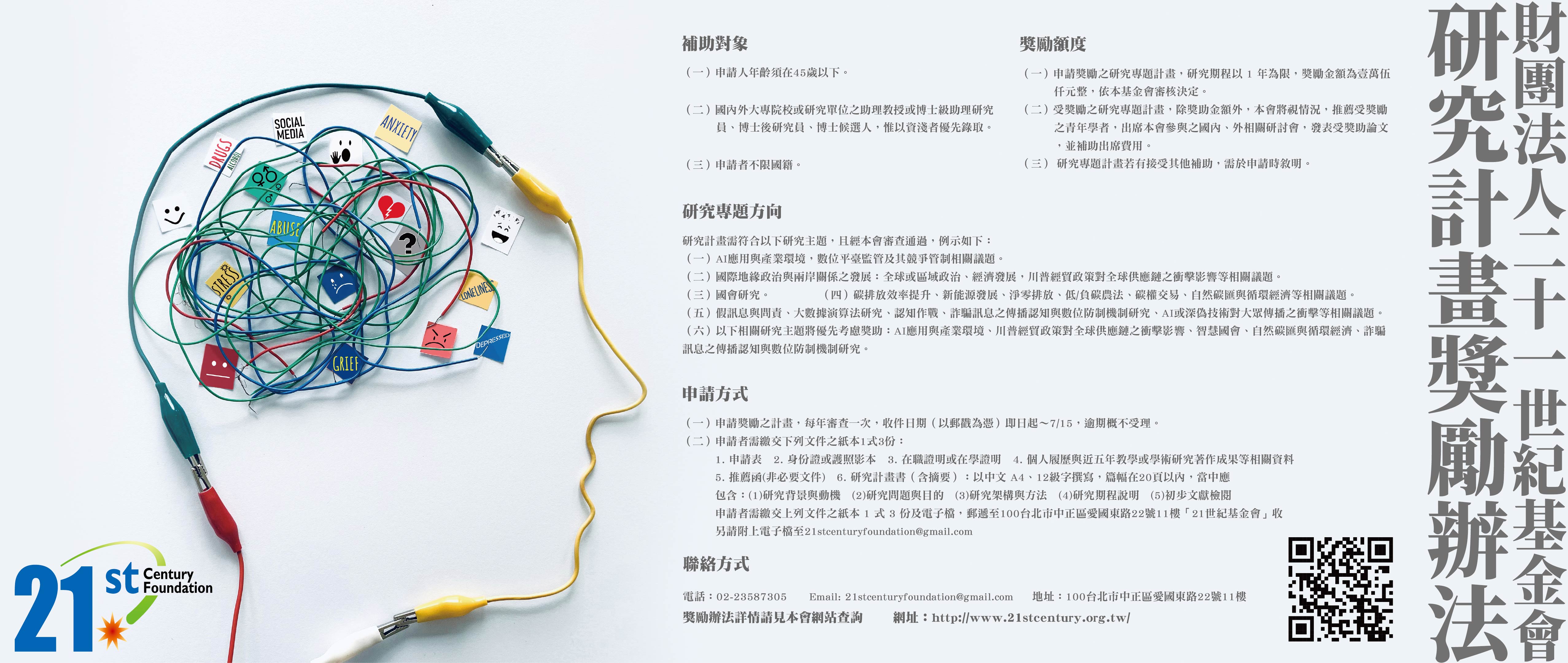 財團法人二十一世紀基金會為提升學術研究水準,培育我國新生代研究人才,特設置本辦法,以獎勵研究人員從事各類型專題計畫之研究。